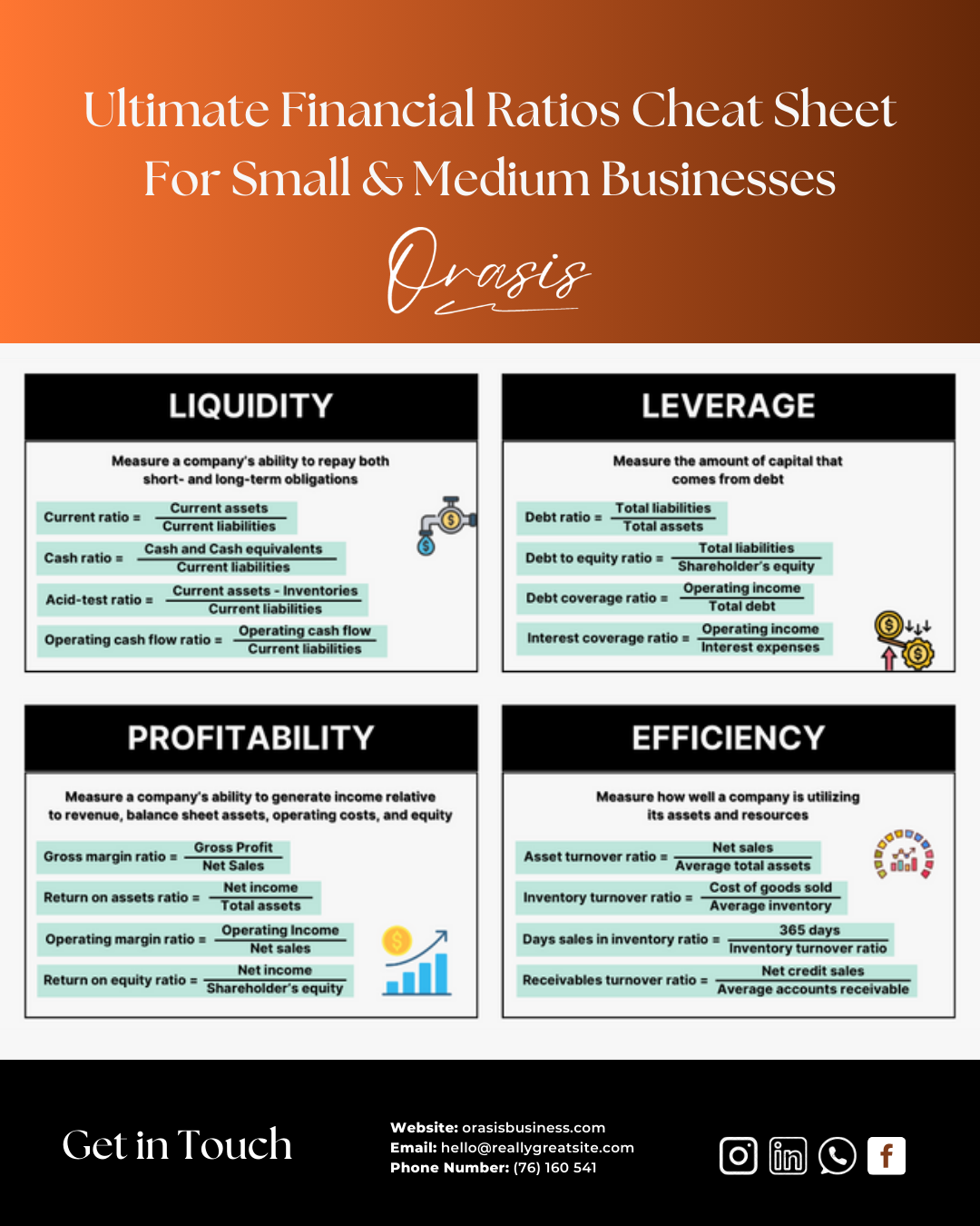 A list of the financial ratios that every business owner should be aware of , understand them, and apply them to his/her business. This will improve the financial control of the business and lead to safer growth